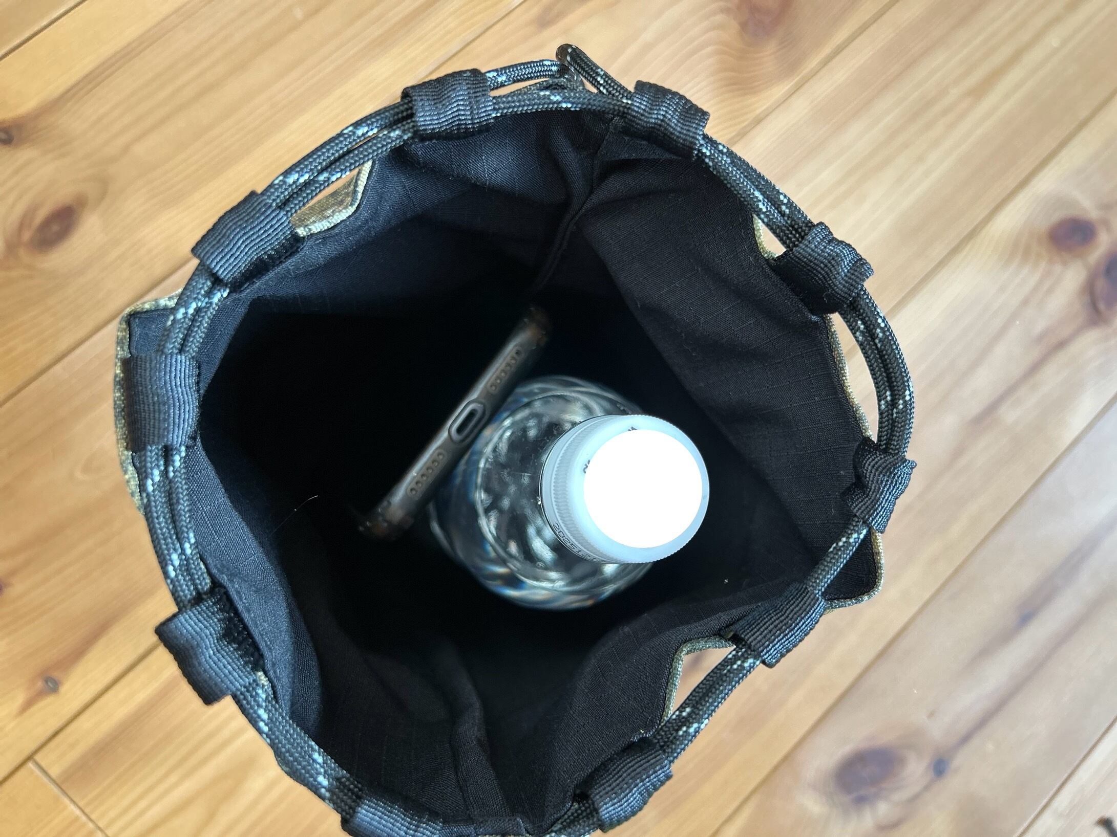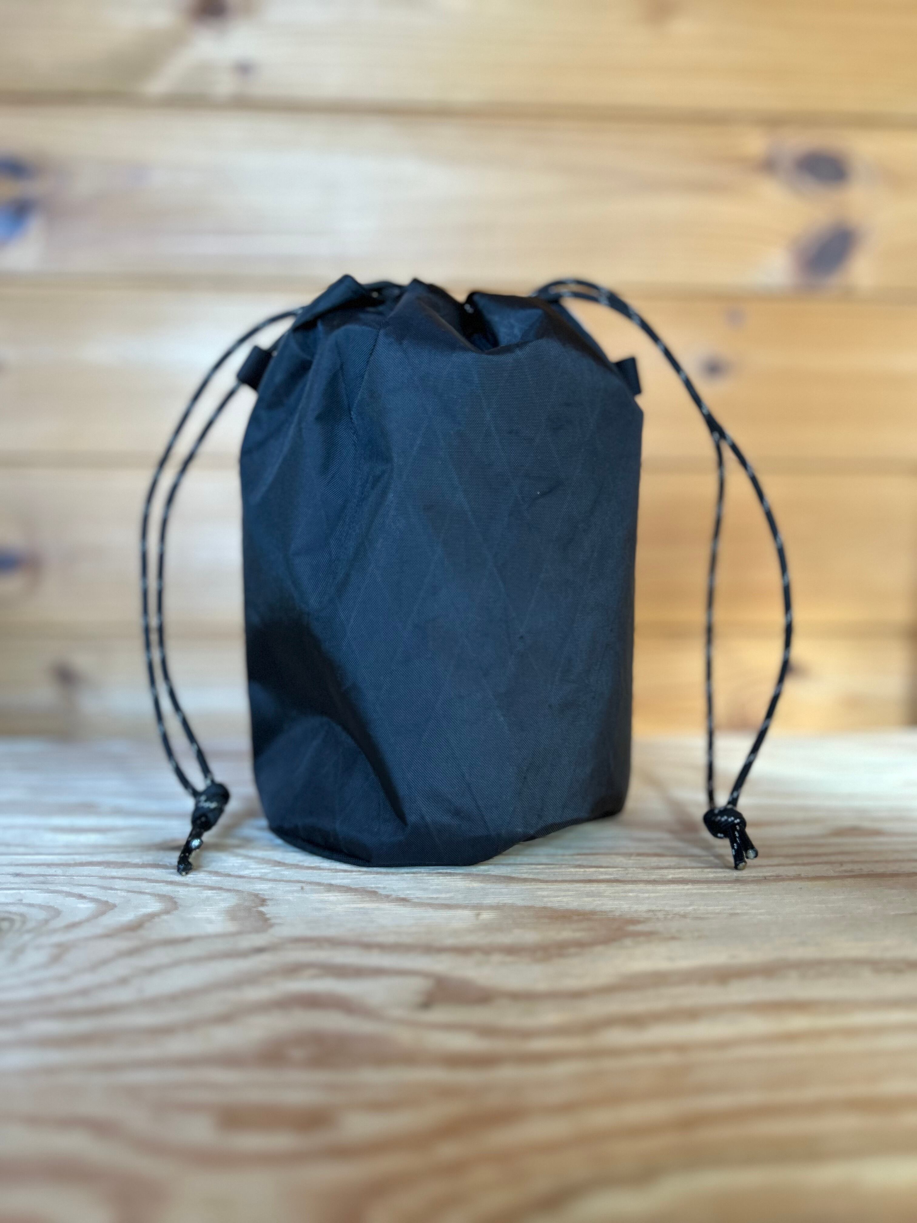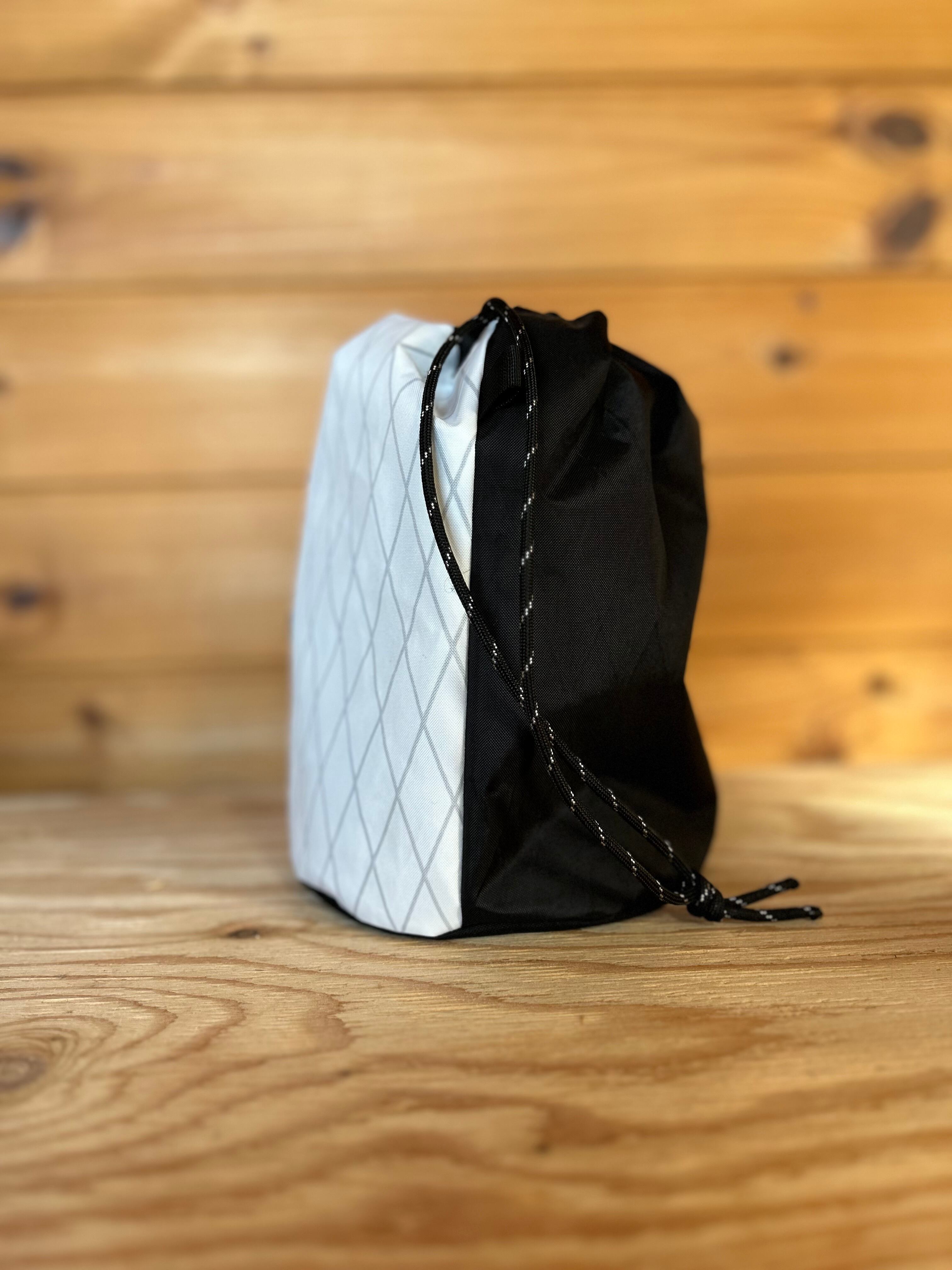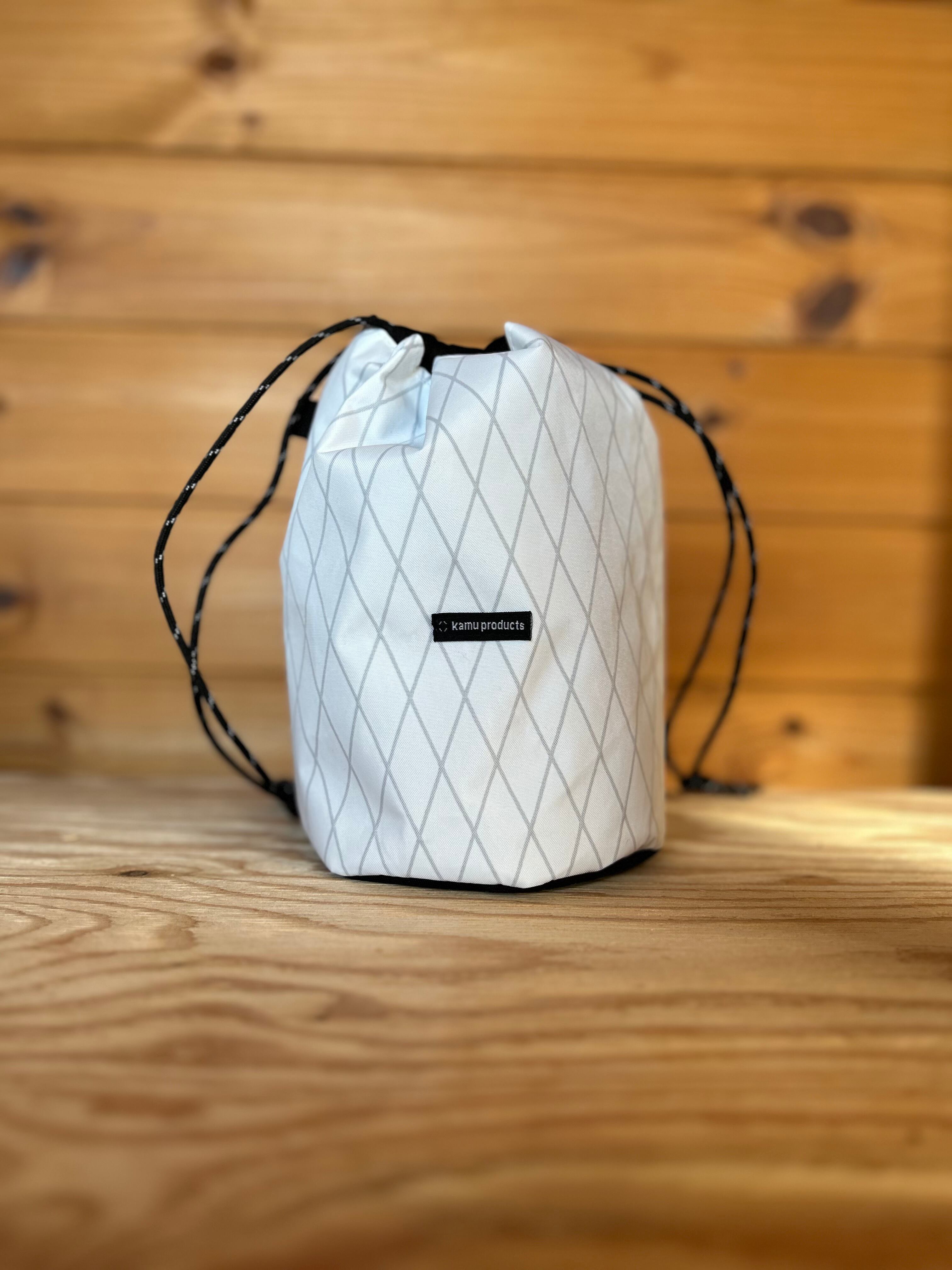 オリジナルブランド「∴KAMU」。kamu(カム)はアイヌ語で【覆う】。XPACやコーデュラ生地を使用した、巾着型のバッグ。内側にはコットンとナイロンの混紡糸を使用したリップストップ生地を使用。