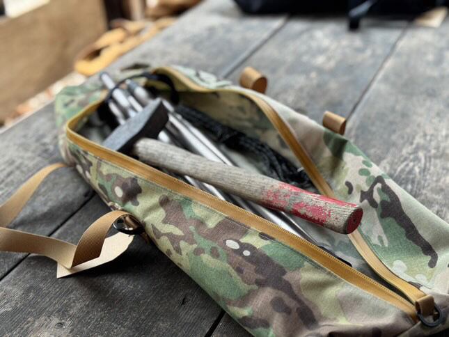 全長70cm、大きく開口するので、ストレスなく出し入れできます。ポール10本以上、ハンマーやペグガイロープ等を入れても余裕のサイズ。
