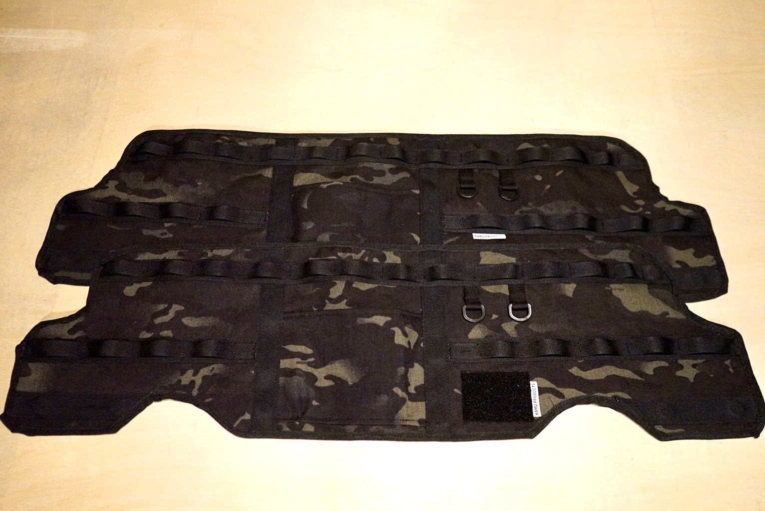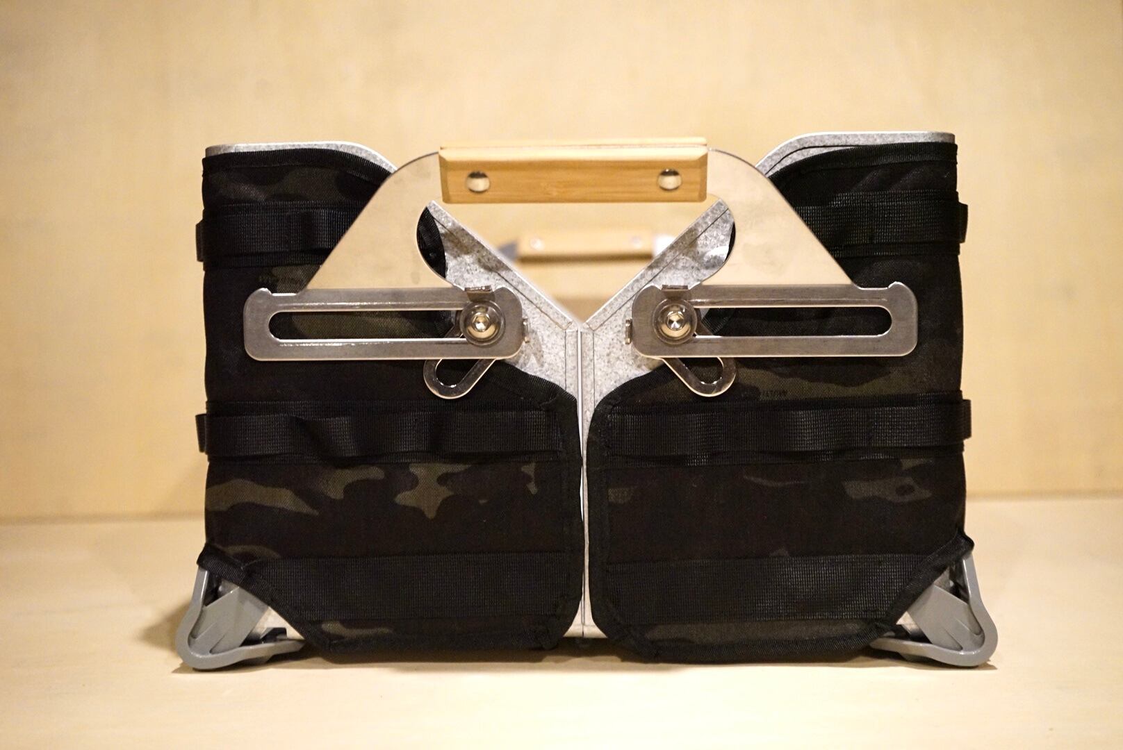 アメリカのインビスタ社が製造販売している素材 CORDURA 500 を使用した、スノーピークのシェルコン25専用カバー。迷彩の1枚物の生地から切り出しているので、同じ柄は一つとしてありません。