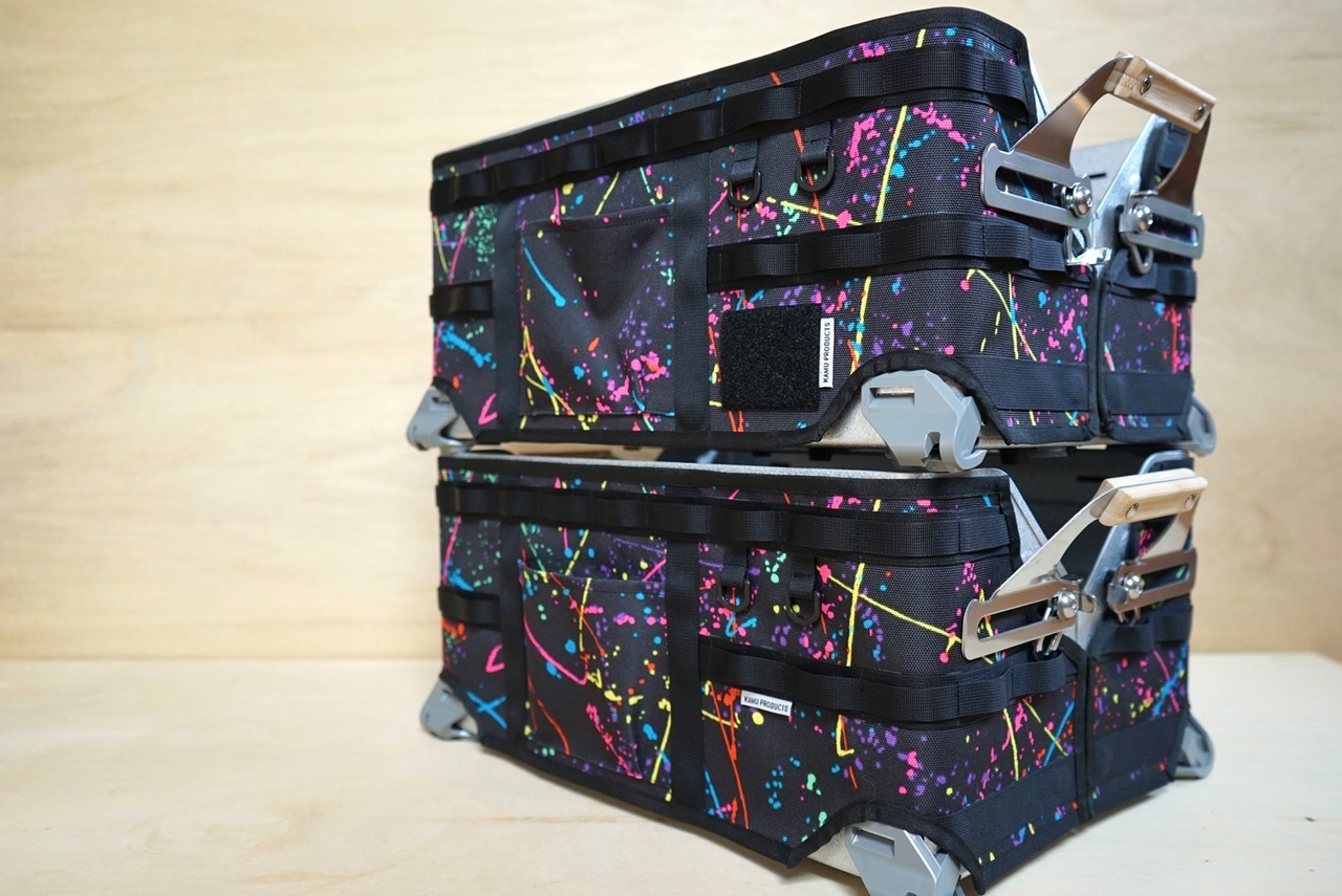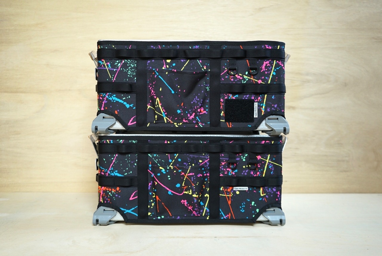 アメリカのインビスタ社が製造販売しているコーデュラ素材 のスプラッターペイント柄(SPLATTER PAINT 1000D)を使用した、スノーピークのシェルコン25専用カバー。