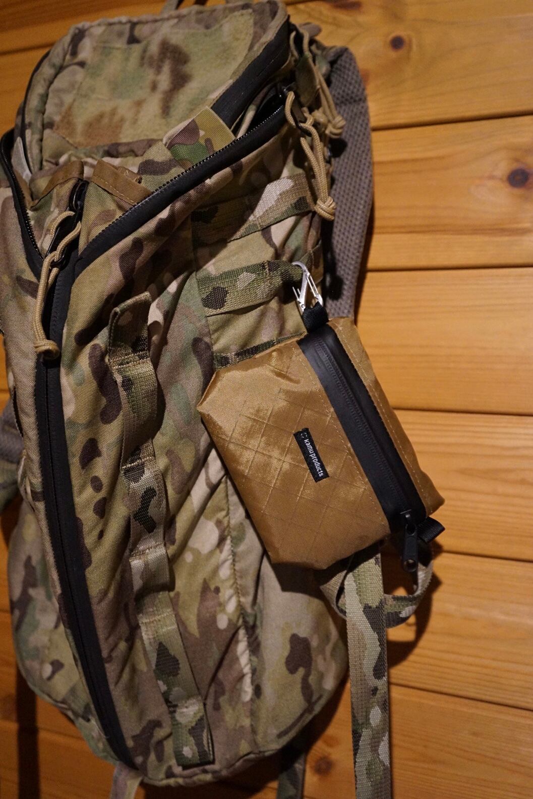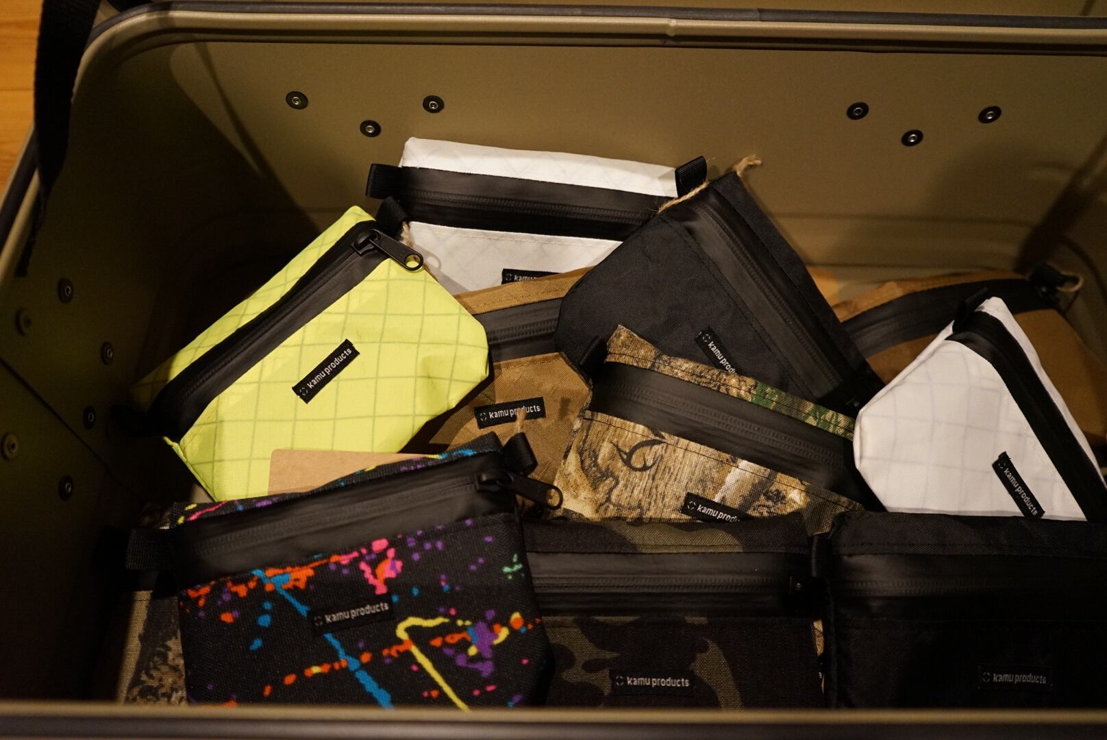 オリジナルブランド「∴KAMU」。kamu(カム)はアイヌ語で【覆う】。アメリカのインビスタ社が製造販売している素材 CORDURAやECOPAKを使用した、ミニポーチ。