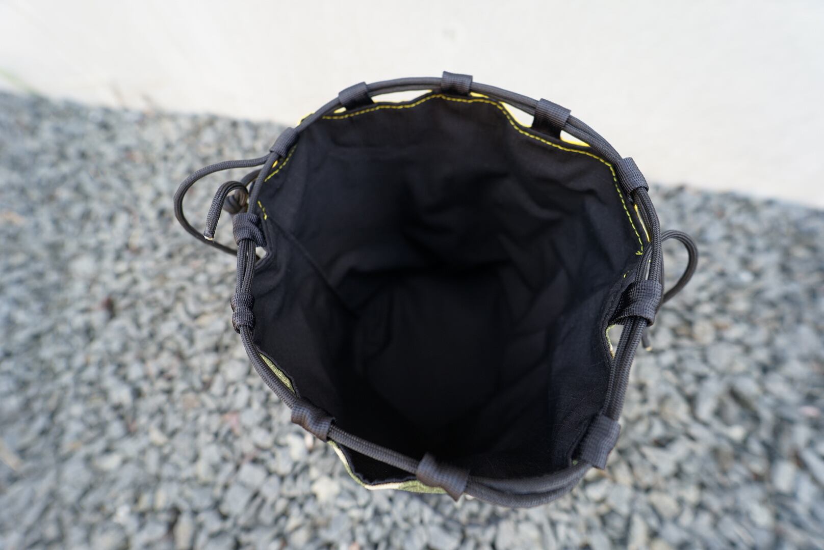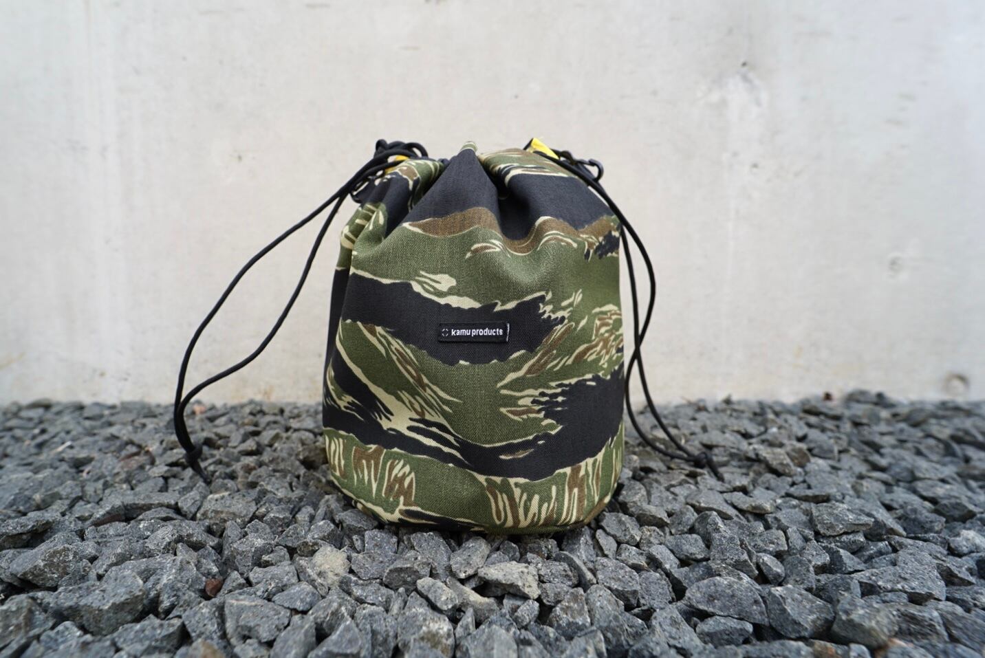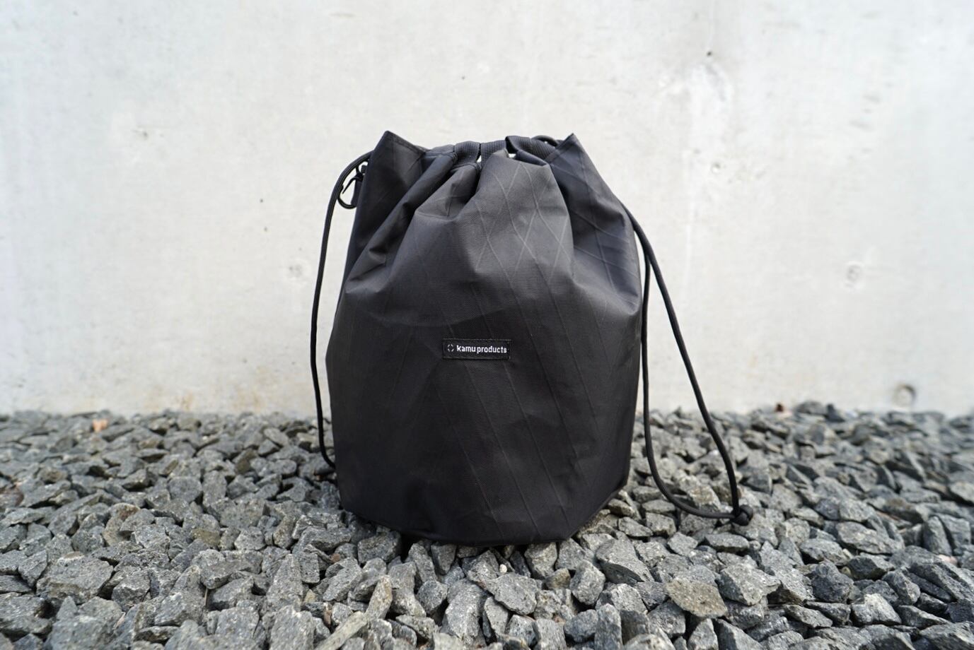 オリジナルブランド「∴KAMU」。kamu(カム)はアイヌ語で【覆う】。XPACやコーデュラ生地を使用した、巾着型のバッグ。内側にはコットンとナイロンの混紡糸を使用したリップストップ生地を使用。
